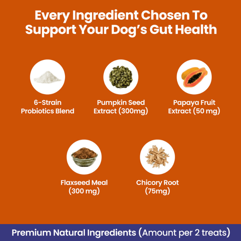 For best results, we recommend using the treats for at least 4–6 weeks before assessing their overall effect on your dog’s digestion and comfort.