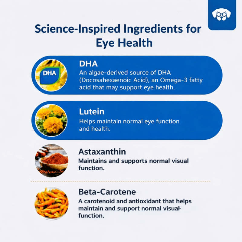 Puppyum™ Seen It All Treats are made with a small, carefully selected blend of science-inspired ingredients designed to support eye health from the inside out as part of your dog’s daily routine. They include DHA, Lutein, Astaxanthin and Beta Carotene, nutrients chosen to help maintain normal eye and visual function over time.